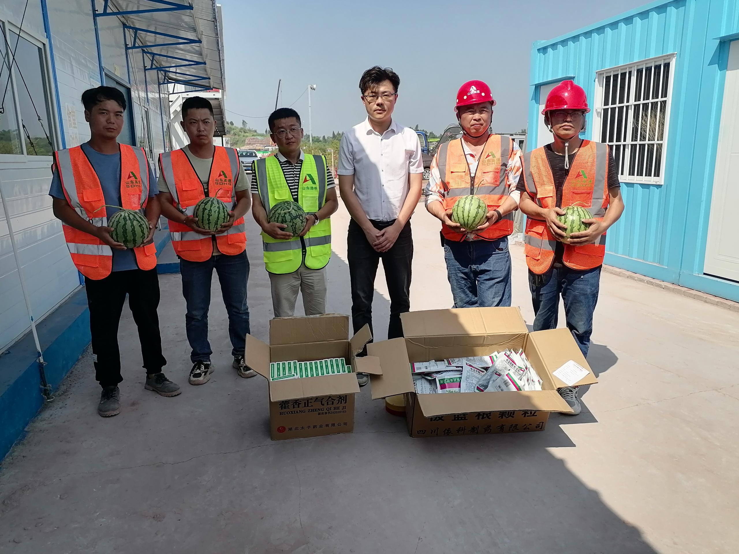 每到一個項目施工現場,周士棠同志都深入一線職工當中,與大家親切交談,親自將一個個西瓜,一盒盒防暑藥品發(fā)放到大家手中,細致詢問大家近期的生活情況和工作情況,實地查看項目進展情況。了解到員工在近40攝氏度的酷熱下依舊堅持高溫作業(yè),加班加點堅守施工一線,爭分奪秒比質量搶進度后,周士棠同志對大家在高溫天氣仍堅守崗位、辛苦勞動付出的精神表示高度肯定與贊揚。